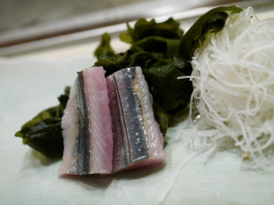 秋刀魚,秋刀當造季節在秋天,所以未算最肥美,魚味也不夠濃。身邊大部份朋友都很愛吃秋刀,我不是很愛吃也不討厭,況且當造時的秋刀也真的不錯吃。老公剛對一般光身魚刺身興趣不大,大概不大喜那種帶點腥的濃郁魚味罷。