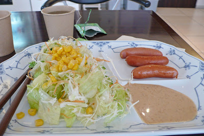 酒店有早餐吃,日本的香腸很好吃啊,怕腸胃不暢通,吃多點蔬菜(添吃了一次)。