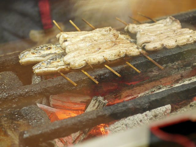 鰻魚肉兩面要反覆的燒,師傅一邊扇風引火,一邊把鰻魚肉反來反去,好忙碌!